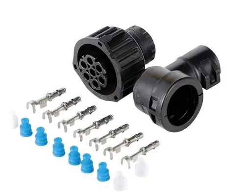7 pólusú hátsó lámpa és fényszóró csatlakozó.Derékszögű műanyag kábel rögzítővel.Alkalmazás: Daf, Iveco, Mercedes, Renault, VolvoGyári szám: 5010306490, 81254750132, 0025402481, 20526067