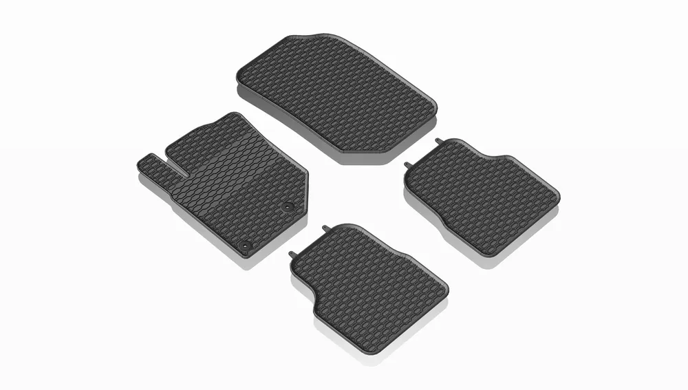 Robusztus gumi autószőnyegek Peugeot 2008 II 2019 – . Méhsejt mintázatú futófelülettel rendelkeznek, amely megakadályozza, hogy a víz vagy az olvadó hó átfolyjon a szőnyegeken. A szőnyeg széle körülbelül 1 cm magas.