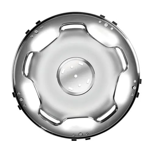 Magasfényű krómozott acél dísztárcsa 17,5 colos kerékre.Lapos kialakítása miatt a hátsó (dupla) kerékre javasolt.Rögzítés: csavaros (tartozék műanyag adapterekkel)Anyaga: krómozott acél