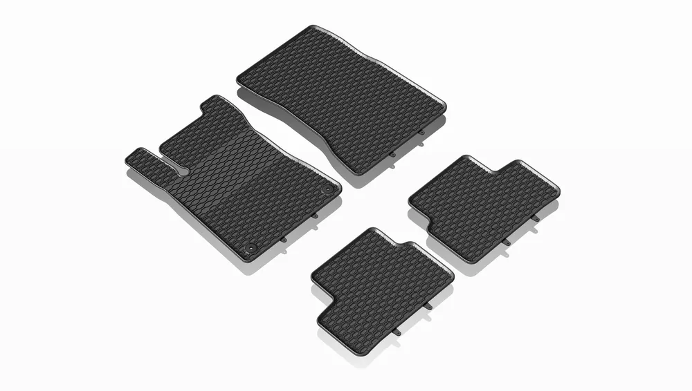 Robusztus gumi autószőnyegek Mercedes-Benz Class A W177 2018 – . Méhsejt mintázatú futófelülettel rendelkeznek, amely megakadályozza, hogy a víz vagy az olvadó hó átfolyjon a szőnyegeken. A szőnyeg széle körülbelül 1 cm magas.