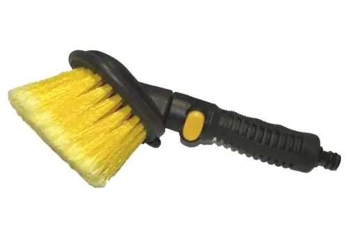 Vizestömlőre csatlakoztatható autó mosó kézi kefe.Kör alakú fejjel.Ergonomikus, csúszásgátlós gumi markolattal.Víz elzáró kapcsolóval a nyélen.Teljes hossza: 30 cmFej átmérő: 12 cm