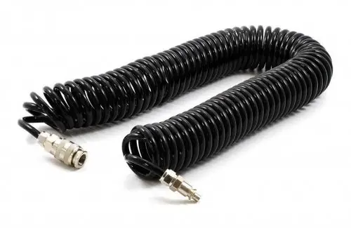 Fülke tisztításhoz való spiráltömlő gyorscsatlakozókkal.Extra hosszú: 10 mKülső átmérő: 6 mmMax. nyomás: 10 kg / cm21/4 coll-os gyorscsatlakozókkal.