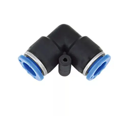 Műanyag gyorstoldó 14mm végekkel, könyök forma.Automata cső rögzítéssel.A biztosító gyűrű megnyomásával oldható a cső rögzítése.Maximális nyomás: 13,5 bar