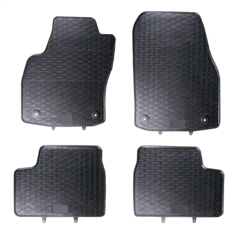 Robusztus gumi autószőnyegek Opel Astra H 2004 – 2014. Méhsejt mintázatú futófelülettel rendelkeznek, amely megakadályozza, hogy a víz vagy az olvadó hó átfolyjon a szőnyegeken. A szőnyeg széle körülbelül 1 cm magas.