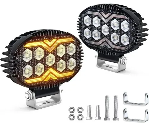 Ovális LED munkalámpa, terítő fénnyel, beépített sárga LED fénnyel.