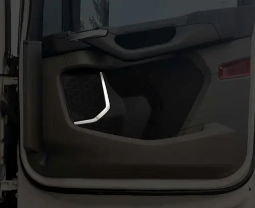 Magasfényű saválló dísz az ajtóba szerelt hangszóró peremére.
