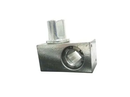 Hajtómű ponyvafeszítőhöz.Menesztés/csatlakozás: 25 mm átmérőjű hasított körMeghajtás: 14×14 mm négyszögAnyaga: horganyzott acélAlapméret: 73x40x40 mm + a csonkokZsírzógombbal ellátva.Jobb oldali kivitel.