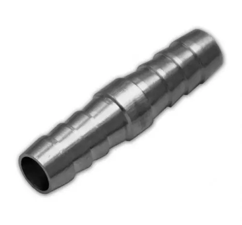 Rozsdamentes bevonattal ellátott acéltömlőtoldó.Levegő, víz és üzemanyag tömlők toldására is alkalmas.10 mm belső átmérőjű tömlő (3/8 col) számára.Külső átmérő: 11 mmTeljes hossz: 44 mm