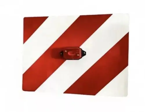 Piros-fehér, túlnyúló rakományt jelző FÉM tábla.Vezetékes, piros LED lámpával, 3 méter vezetékkelMérete: 30 x 40 cmMinősített: E09 EA-02 R1-02 1475 Tápellátása : 12/24VElhelyezés: bal oldal