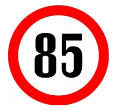 85-ös sebesség korlátozó matrica.