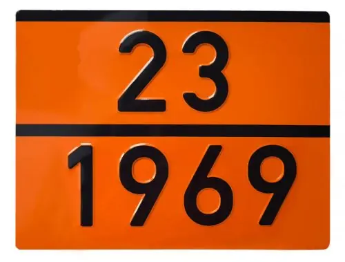 Számozott ADR tábla izobutánhoz (R600a).