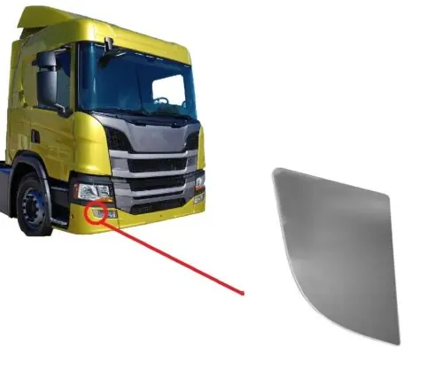 Krómozott műanyag borítás a ködlámpa mellé.Gyárival megegyező (pattintós) rögzítéssel.Befoglaló mérete: 8,5 x 6,8 cmJobb oldalra.Típus:– Scania S széria 2017-tőlGyári szám: 2256141